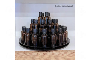 This sturdy, triple-tier, black acrylic carousel spins as a Lazy Susan for quickly and easily locating oils. Hand washable.
