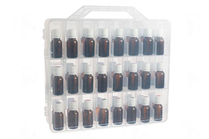 Compactly store all of your essential oil vials in the same place with this plastic storage case. The layered, compartment design helps you store more oils by letting you take advantage of vertical space. Sturdy removable inserts allows you to customize your case and keep you oils in place. Opens on both sides.