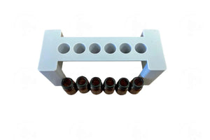 This two-part funnel system is constructed from FDA-approved food-safe plastic, ensuring safety and reliability. Designed to accommodate six size 00 capsules simultaneously, the funnel system effectively directs oils into the capsules without any spills.