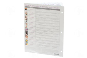 Introduce others to the benefits of essential oils with this convenient, 3-hole-punched, foldout binder chart. It lists common uses for essential oils and blends, as well as the body systems primarily affected by them. The information is condensed from the Reference Guide for Essential Oils.Useful for both marketing and education about essential oils in any setting. Printed on heavy card stock and UV coated for protection from oils.