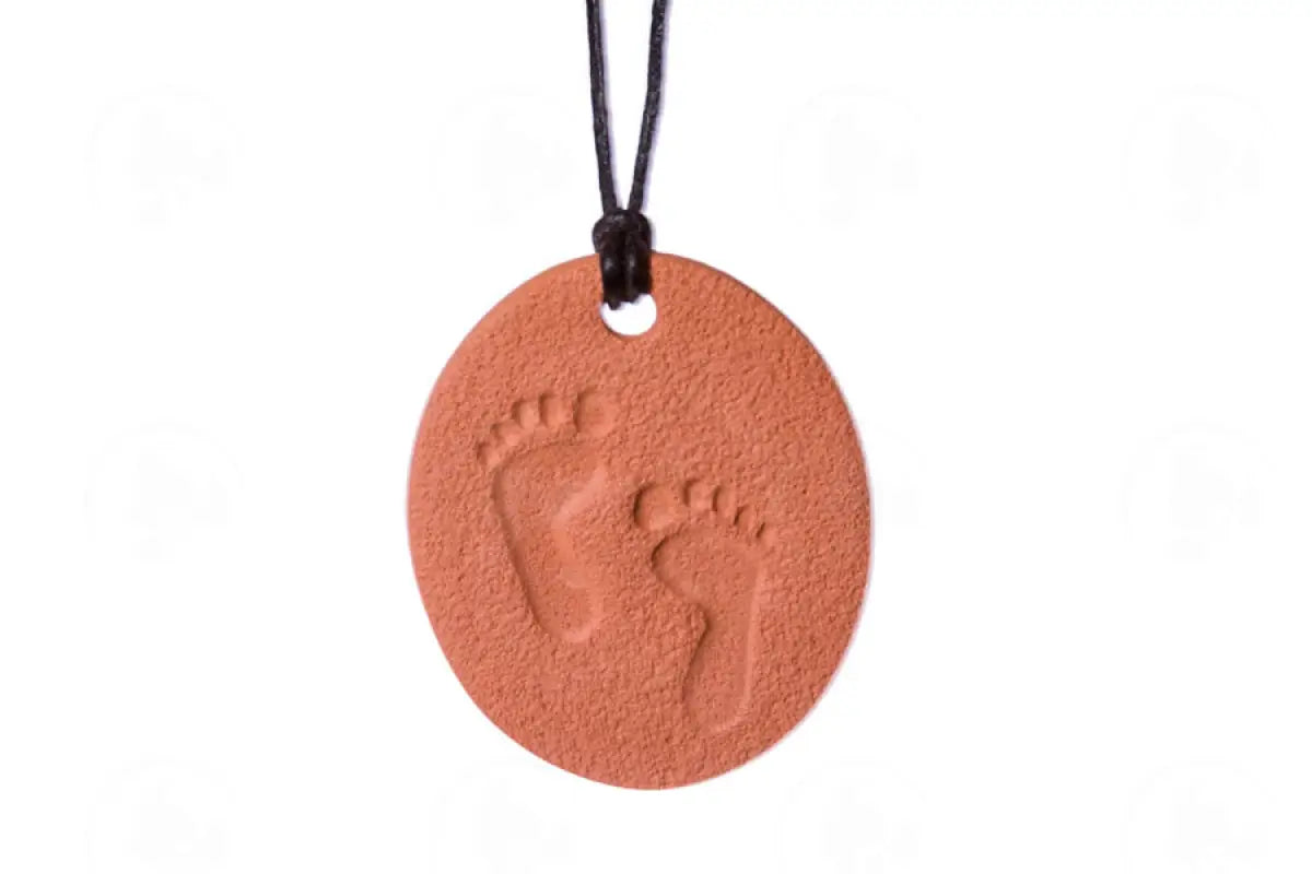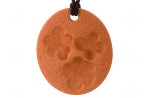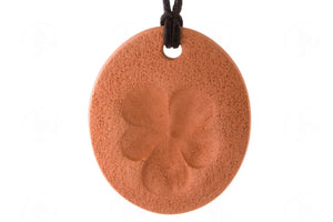 Each terra-cotta pendant is hand-made with an embossed design. The naturally porous clay surface is perfect for absorbing and then diffusing essential oils. Enjoy the benefits of aromatherapy all day long wherever you go!